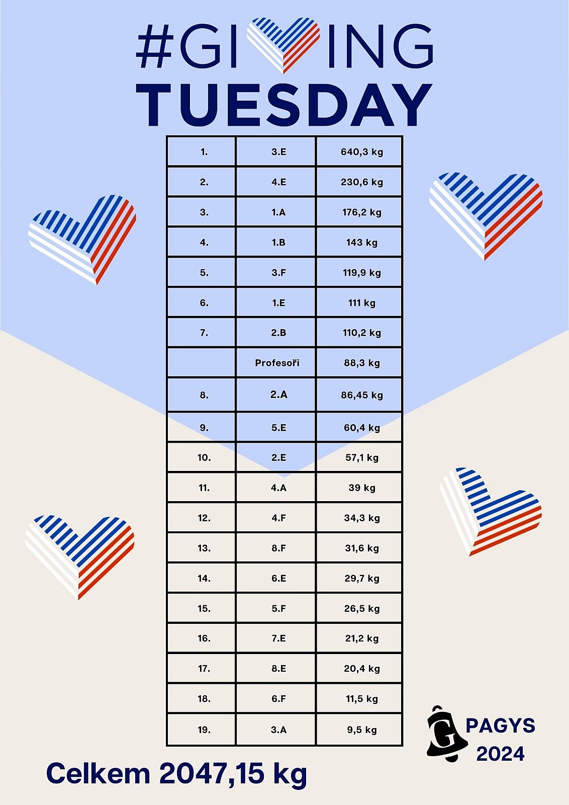 I naše škola se připojila a uspořádala sbírku potravin a drogerie. A výsledek předčil očekávání! Vybrali jsme dohromady 2047,15kg!